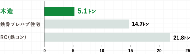 また主要な構造物には木材が使用されているため鉄筋などに比べ、建設時のCO2排出量はコンクリート造の住宅より