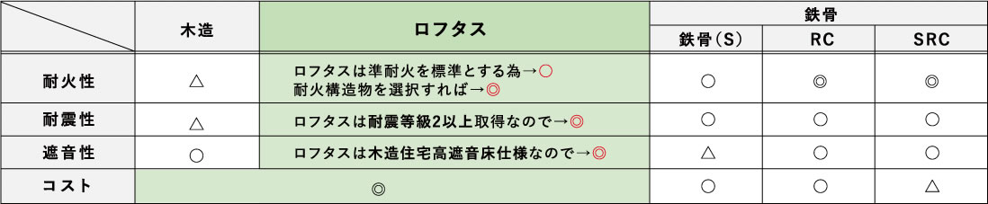 - ■木造マンションと鉄骨/SRC/RC/造の比較