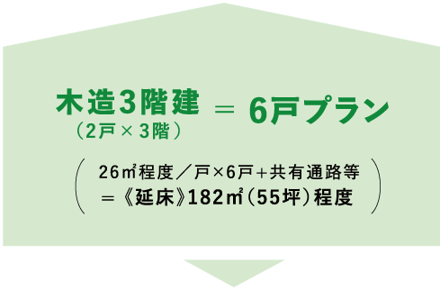 狭い土地でも木造のため柔軟な設計プランに対応可能 - 大型重機などの工事が入れない「狭小地」や「変形地」など特定の条件下にある土地の中でも戸数を確保しやすい点。
