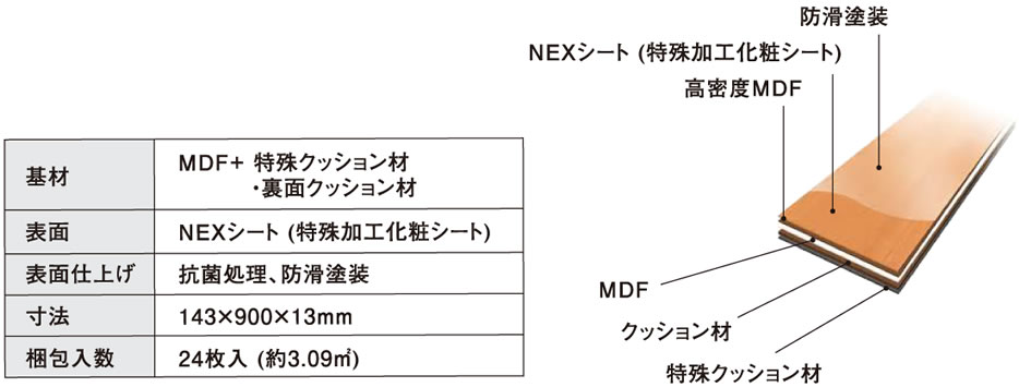 ※濃色系のフロアは、淡色系のフロアより同じ程度のキズでも目立つ場合がありますのでご了承ください。イス、テーブル等、移動する家具の脚にフェルト付きキャップ等で保護することをおすすめします。