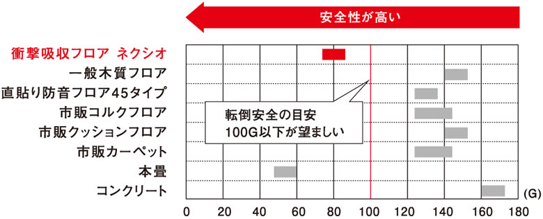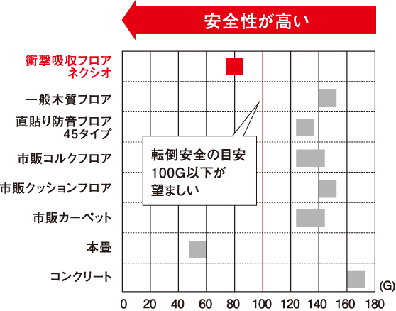 100G以下とは転倒衝突の頻度が高く配慮が望まれる、