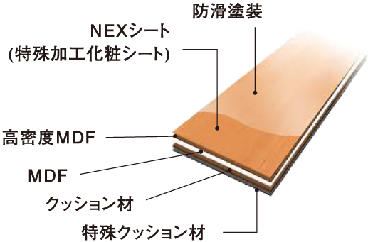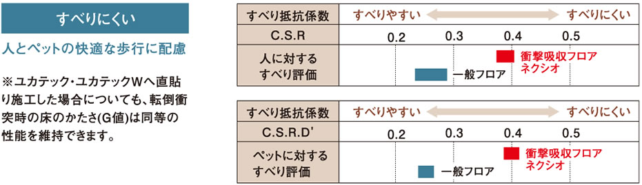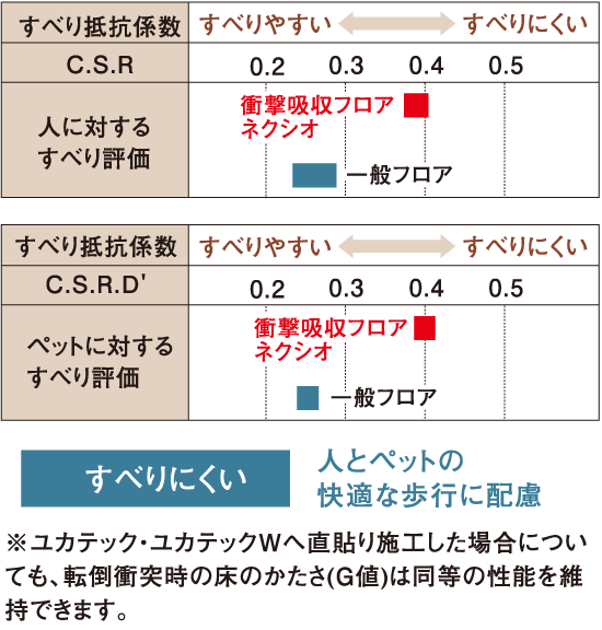 ※使い方や足先の材質・形状によってはキズがつく場合がありますのでご注意ください。(キズが全くつかないというわけではありません。弊社一般フロアと比較してキズがつきにくい床材です。)
